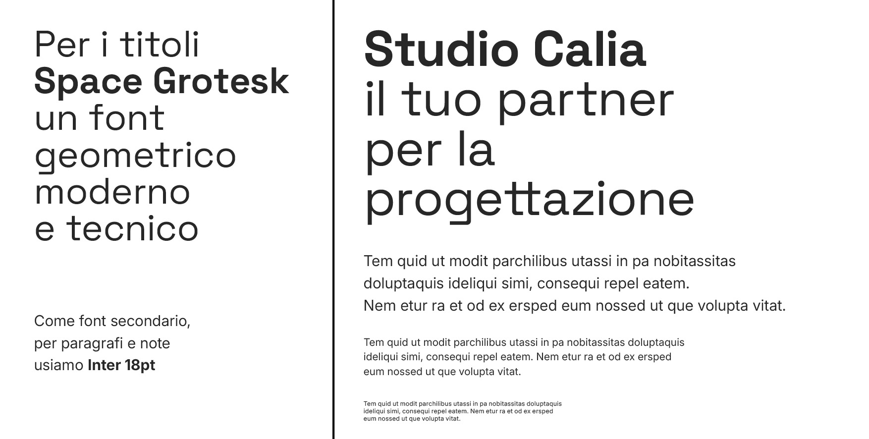 La tipografia scelta ha un carattere tecnico e preciso senza rinunciare al tono moderno che lo studio vuole adottare.